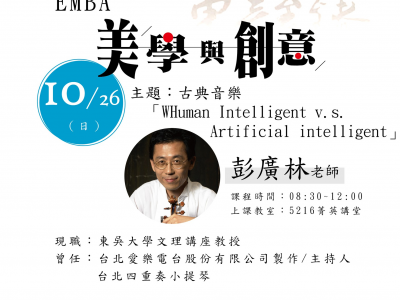 Without AI, Life still finds way【EMBA 美學與創意】文: 東吳EMBA蕭仁豪 (D19) <當人文超越了科技,我們的夢想才有未來>彭廣林教授以深入淺出的方式,以人類文明發展的時序與人文、藝術、哲學、科學發展為經緯... 更多