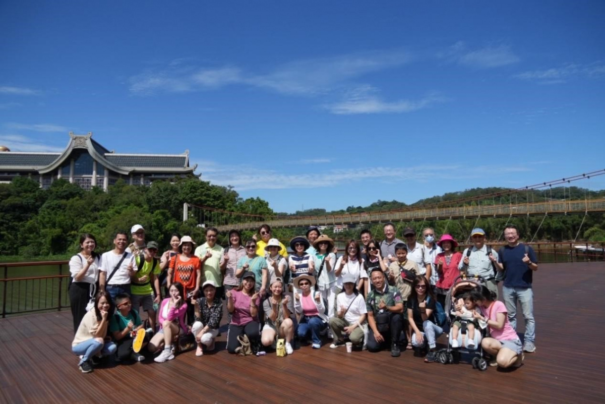 今天天氣非常好,大家也都活力滿滿坐滿一輛遊覽車一起出發,第一站抵達峨眉湖,一起到細茅埔吊橋合照後前往老街逛逛。接著去欣賞宏偉的彌勒佛,學習快樂生活的秘訣。