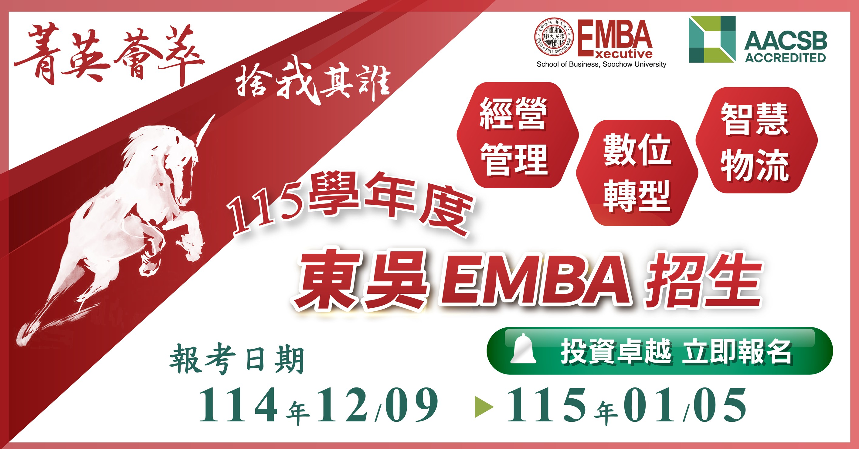 🌟 東吳大學EMBA 115學年度招生開跑! 🌟