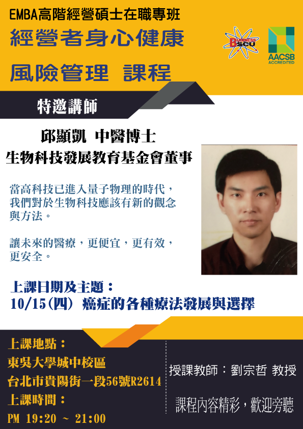 【演講訊息】109年10月15日(四)晚上「經營者身心健康風險管理」講座